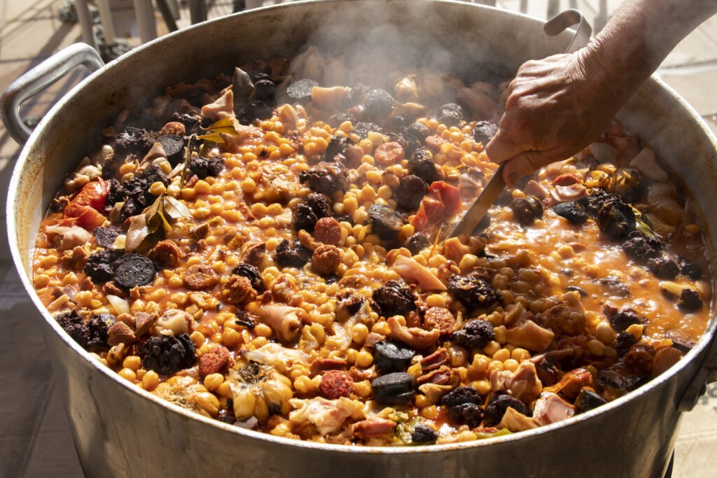 Nuestra mayor especialidad es el cocido a la paja, un plato único que requiere 48 horas de reserva previa y que cocinamos durante 24 horas a fuego lento con paja, siguiendo una técnica tradicional que conserva todo el sabor y la autenticidad de antaño.